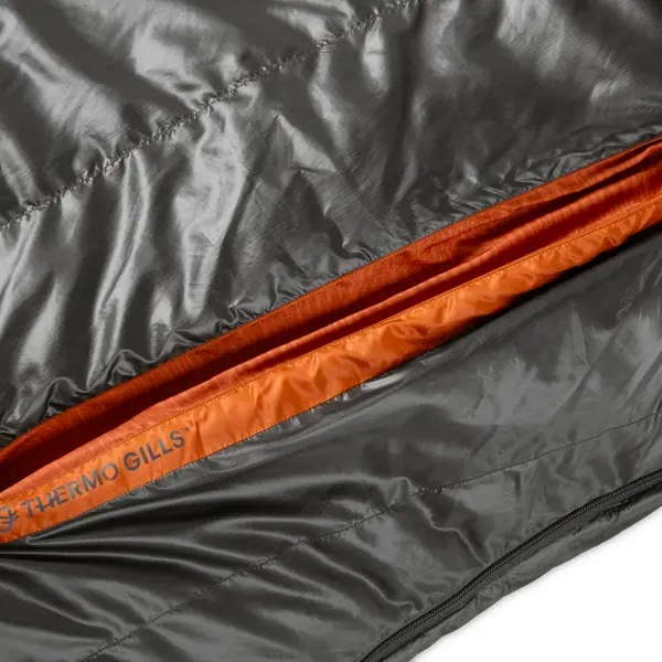 Disco 在胸部配備了一組新一代 Thermo Gill™ 通風口,可提供微調的溫度控制和更好的戶外睡眠體驗。每個Thermo Gill™ 都有一個內部和外部拉鍊,帶有防風中間層,允許多種不同的配置來調節袋子的溫度,而無需直接暴露在冷空氣中。 NEMO 領口的 Blanket Fold™ 防風領經過重新設計,尺寸和形狀可進一步優化睡眠溫度。將毯子折疊起來,可以毫無畏懼地阻擋任何寒冷,同時模仿家裡床的舒適度。推出後,它有助於立即排出多餘的熱量。最後,Disco 的改進設計採用經過 RDS 認證的防水羽絨隔熱隔板,沿著軀幹垂直放置以提高舒適度,並在腰部下方水平對齊以防止羽絨遷移。