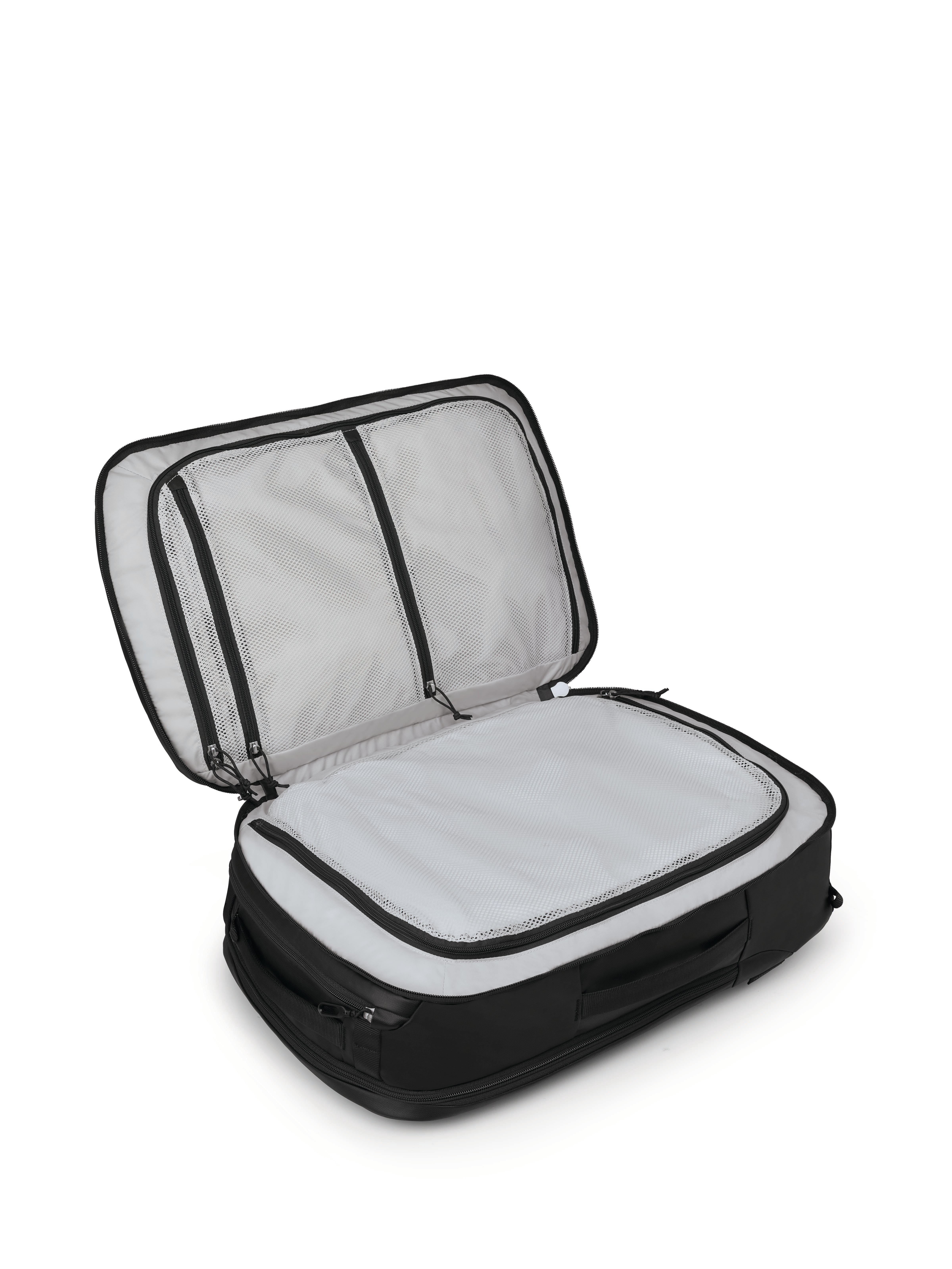 - 分體式主隔層 (Split main compartment) 設計,提供便利的行李箱式打包和輕鬆存取。